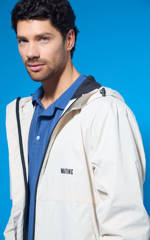 Siré opaco. Ajuste capucha y cintura con tancas-aplique en altura. 100% poliéster.