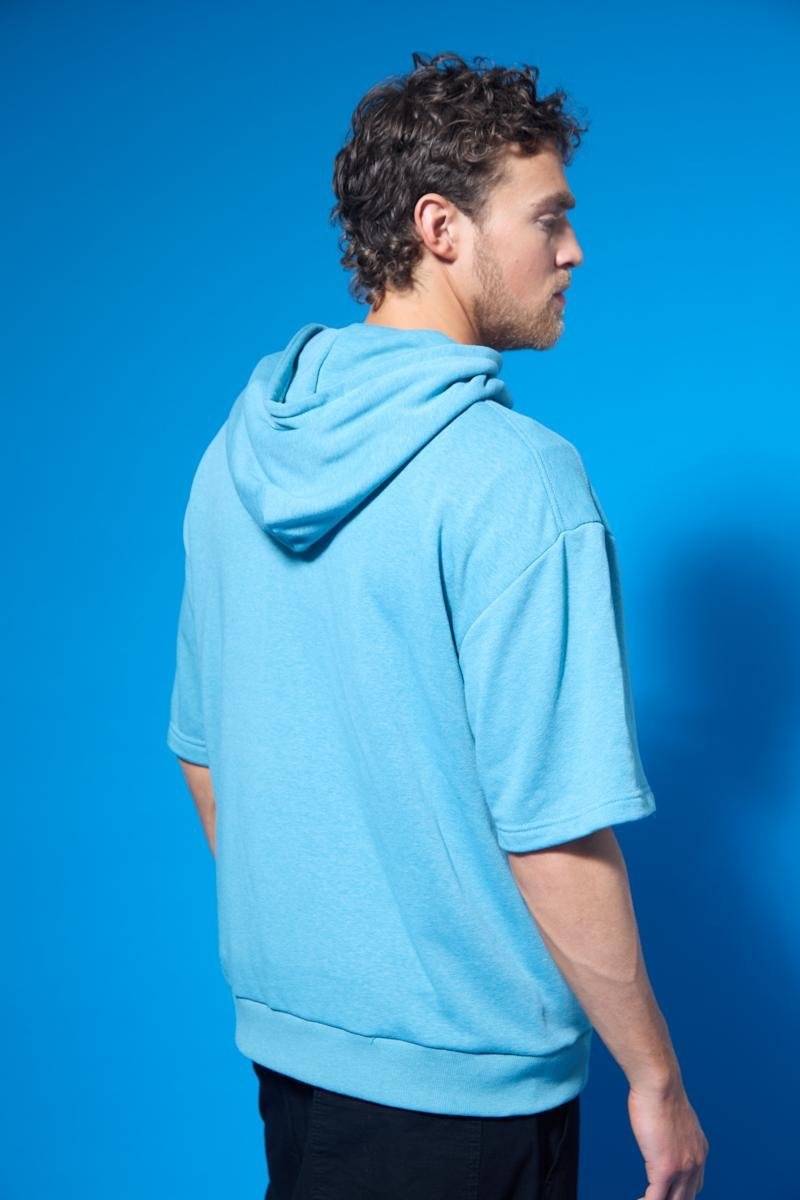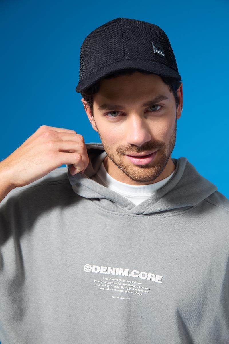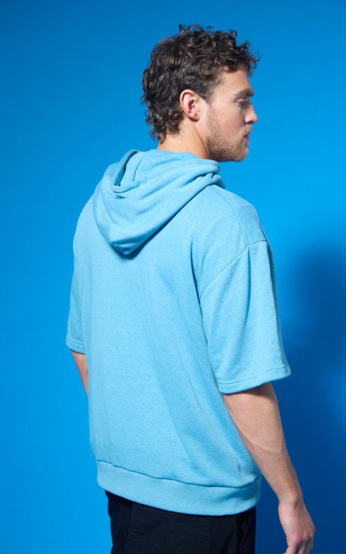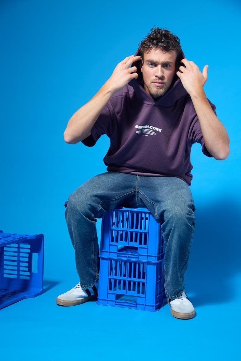 Rústico melange diagonal. Estampa en altura y bolsillo canguro. 100% poliéster.